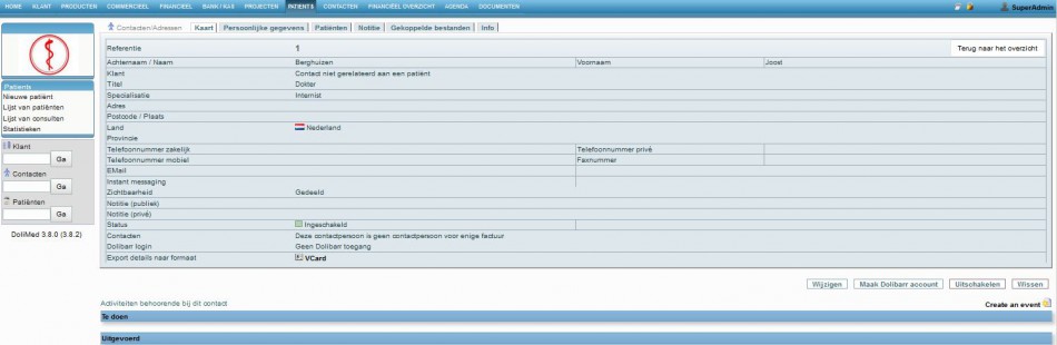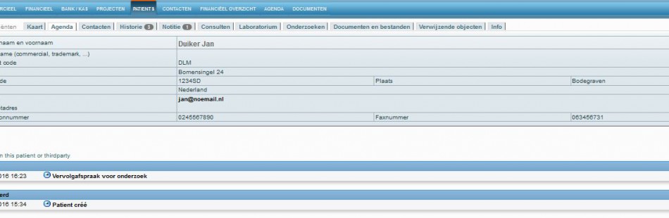 - Patiënten beheer en alles wat hiermee te maken heeft zoals: